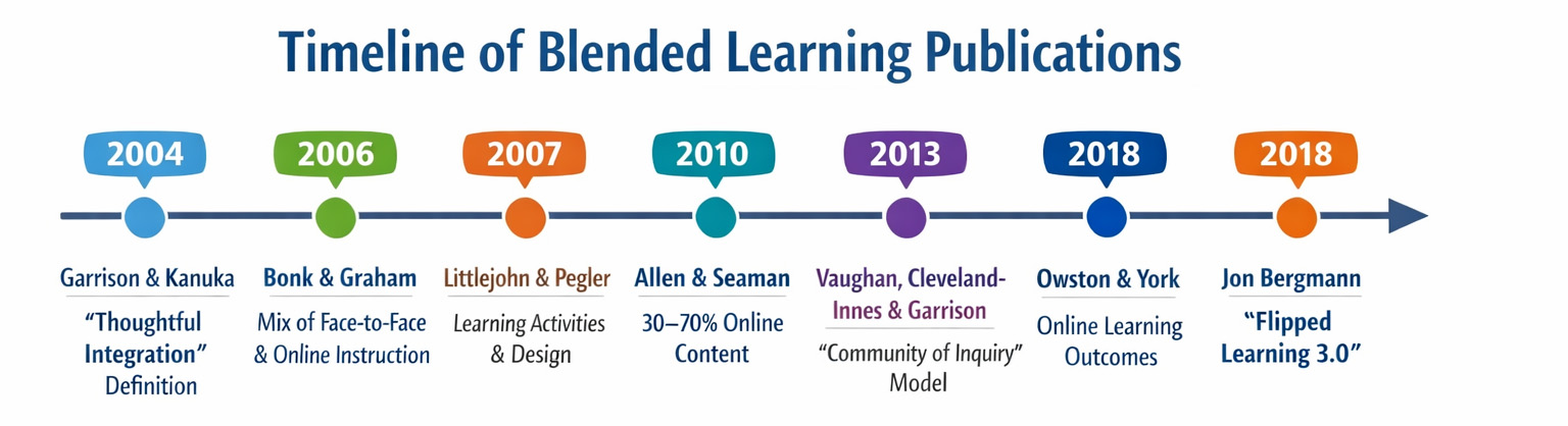 Garrison and Kanuka (2004) offered what became one of the most cited definitions: Blended Learning as “the thoughtful integration of classroom face-to-face learning experiences with online learning experiences.” The key word here is “thoughtful” — suggesting that simply putting some content online does not qualify. Bonk and Graham (2006), on the other hand, described it more structurally as the combination of face-to-face instruction with computer-mediated instruction, leaving the door open for far simpler interpretations.